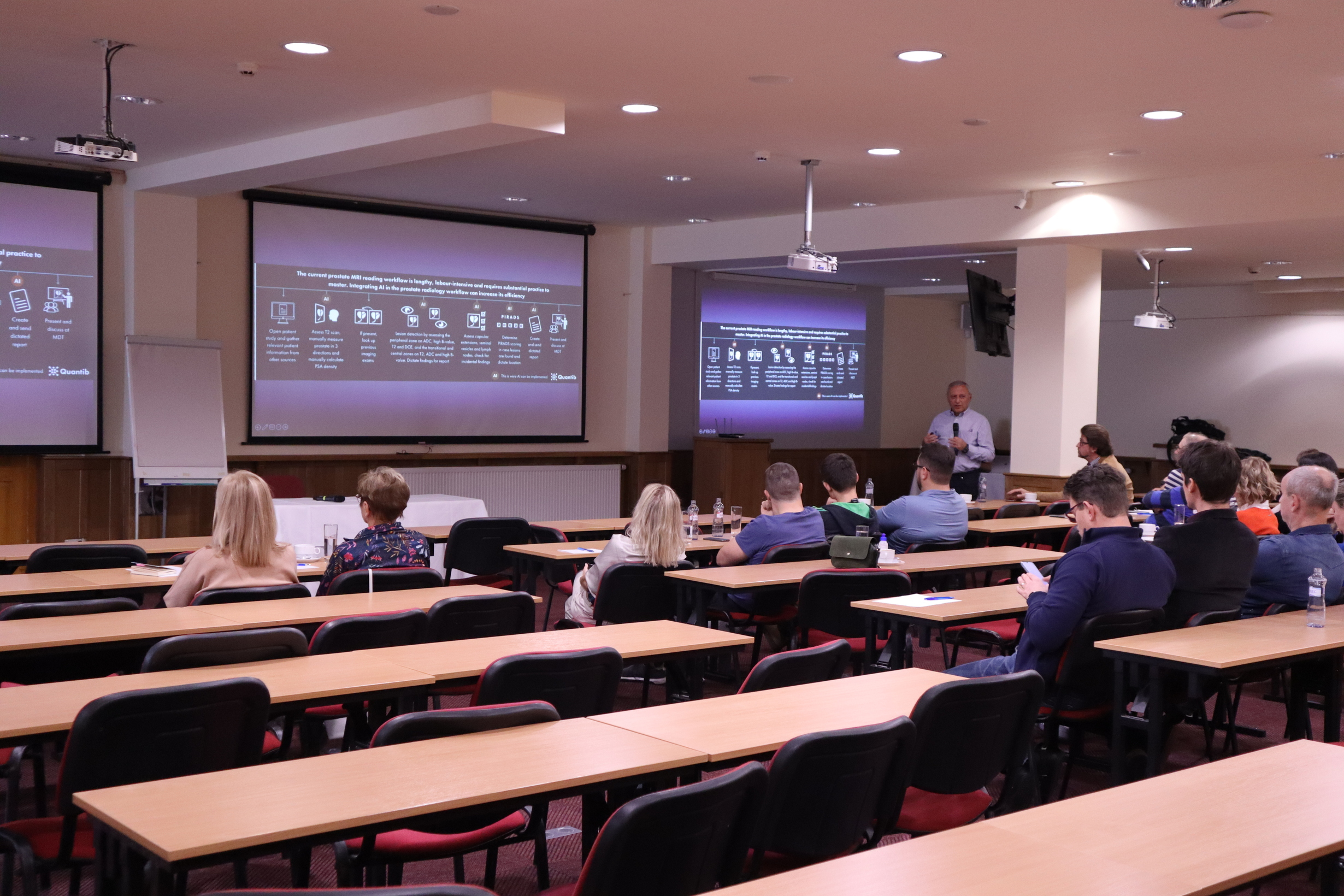 Naši lekári pravidelne prednášajú o novinkách v MR diagnostike. Minulý piatok sa v Demänovskej doline konal odborný seminár so zameraním na nové trendy v rádiológii, ako napríklad využitie umelej inteligencie pri MR vyšetrení prostaty. O svoje skúsenosti z tejto problematiky sa vo svojej prednáške podelili MUDr. Víťazoslav Belan, PhD. spolu s MUDr. Lýdiou Frigovou.