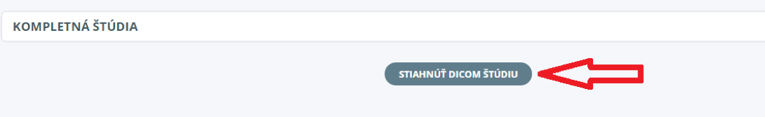 6. Po načítaní kompletnej štúdie kliknite na ikonku „Stiahnuť dicom štúdiu“. Kompletná štúdia sa uloží do Vášho počítača v komprimovanom formáte .zip.