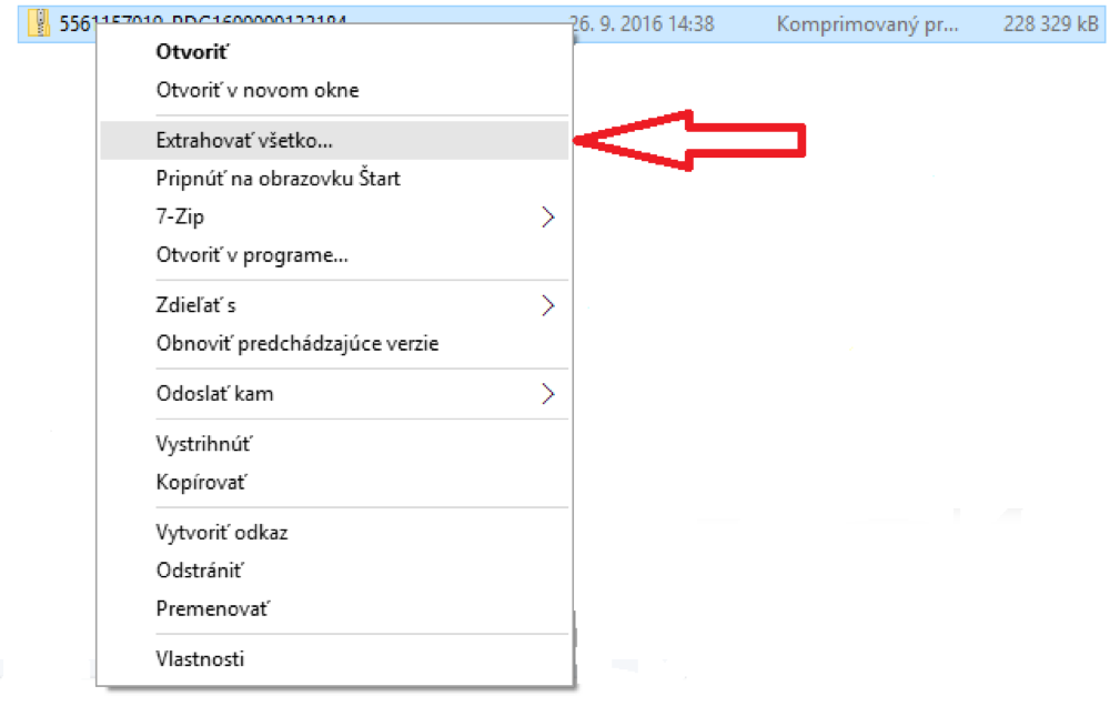7. Kliknite na zložku pravým tlačidlom a vyberte „Extrahovať všetko „