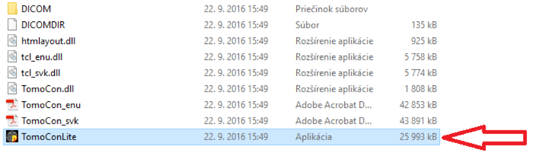 8. Súbor sa „rozbalí“ a uloží do Vášho počítača. Otvorte priečinok súborov a kliknite na aplikáciu „TomoConLite“.