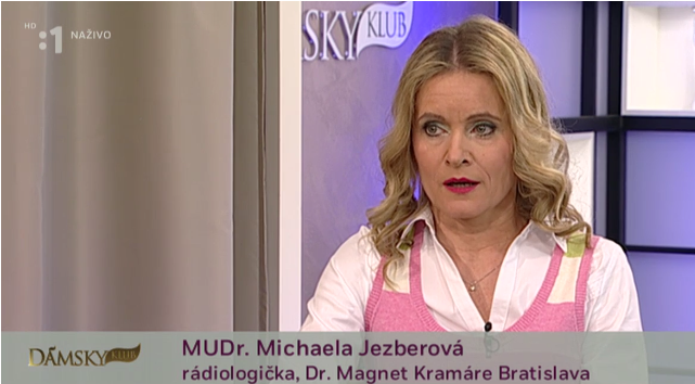 Naša odborná garantka MUDr. Michaela Jezberová z pracoviska magnetickej rezonancie Dr. MAGNET s.r.o. na Kramároch bola opäť pozvaná do televíznej relácie Dámsky klub. Tentokrát s moderátorkou relácie hovorili o MR vyšetrení tehotnej ženy a plodu. Čo všetko sa dá prostredníctvom tohto vyšetrenia diagnostikovať, sa dozviete z archívu RTVS: http://www.rtvs.sk/televizia/archiv/11665/122986