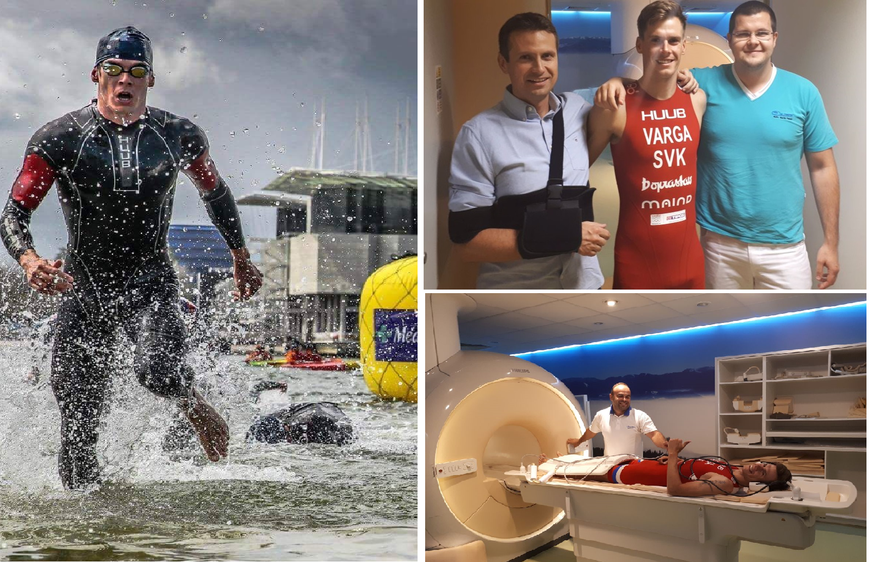 Priamo z „Grand Final“, posledného kola svetového pohára v triatlone ITU World Triathlon v Queensland, Austrália, k nám prišiel na MR diagnostiku slovenský olympionik Richard Varga. Richard, ktorý má toho času najlepšiu plaveckú formu vo svetovom pohári ELITE men ITU Triathlon, vychádzal z vody ako prvý (foto č.1), dobehol vo finálnom závode aj napriek zraneniu ľavého lýtkového svalu na stále vynikajúcom 36. mieste. V podstate priamo z letiska po prílete na Slovensko prišiel k nám na magnetickú rezonanciu Dr. Magnet Kramáre na MR diagnostiku jeho problémového lýtka. Na špičkovom medicínskom prístroji so silou magnetického poľa 3 Tesla dokážeme v MR centre Kramáre (Bratislava) odhaliť a diagnostikovať s využitím submilimetrového zobrazenia aj tie najjemnejšie zranenia svalových štruktúr ako napríklad natrhnutie svalu alebo zápal šľachy. Diagnostiku a vyhodnotenie nasnímaného obrazu zabezpečil jeden z najlepších špecialistov – rádiológov v odbore magnetická rezonancia, MUDr. Martin Fabian, PhD.