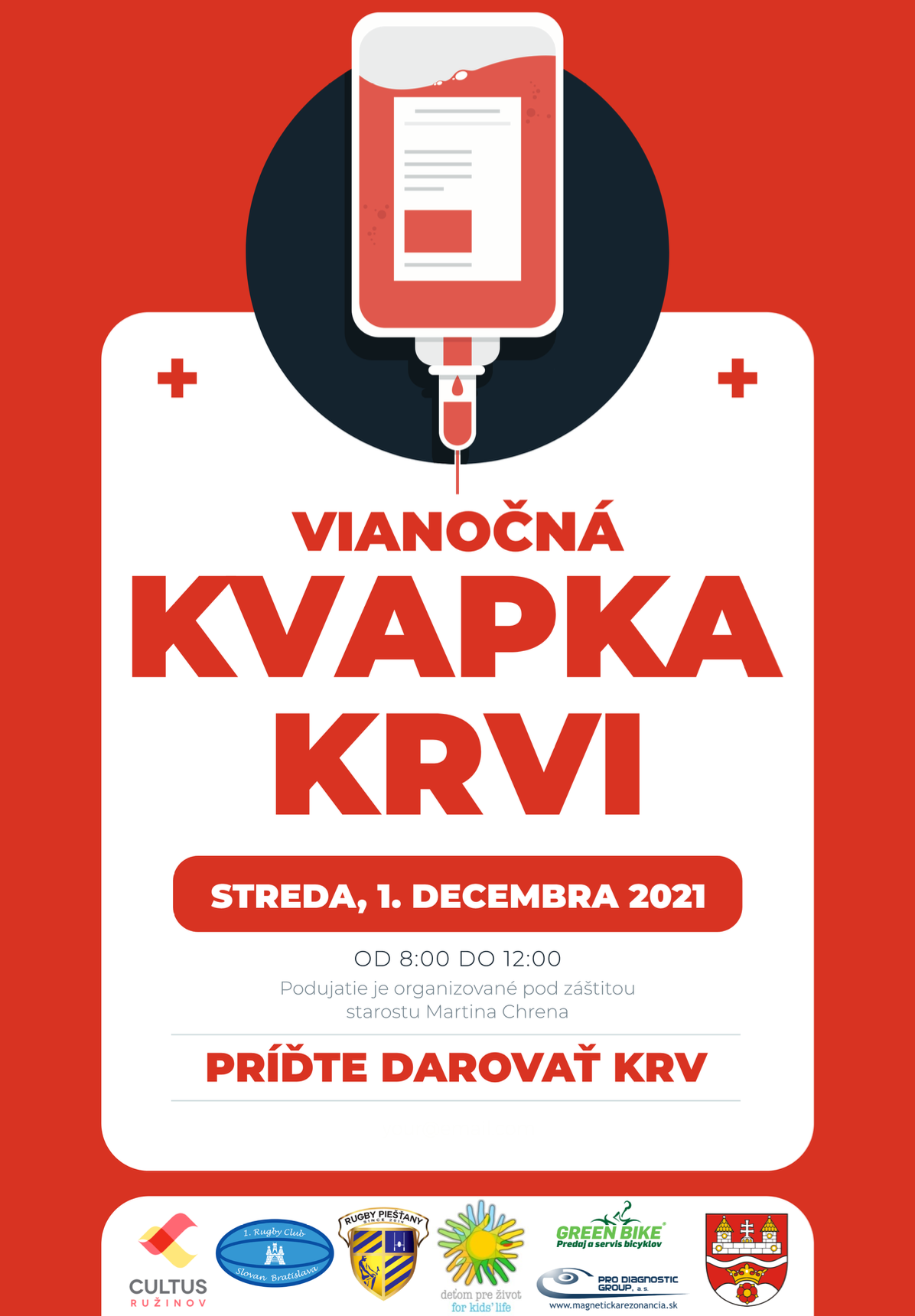 Vážení priatelia, radi by sme Vás aj tento rok pozvali na tradičnú Vianočnú kvapku krvi deťom pre život.