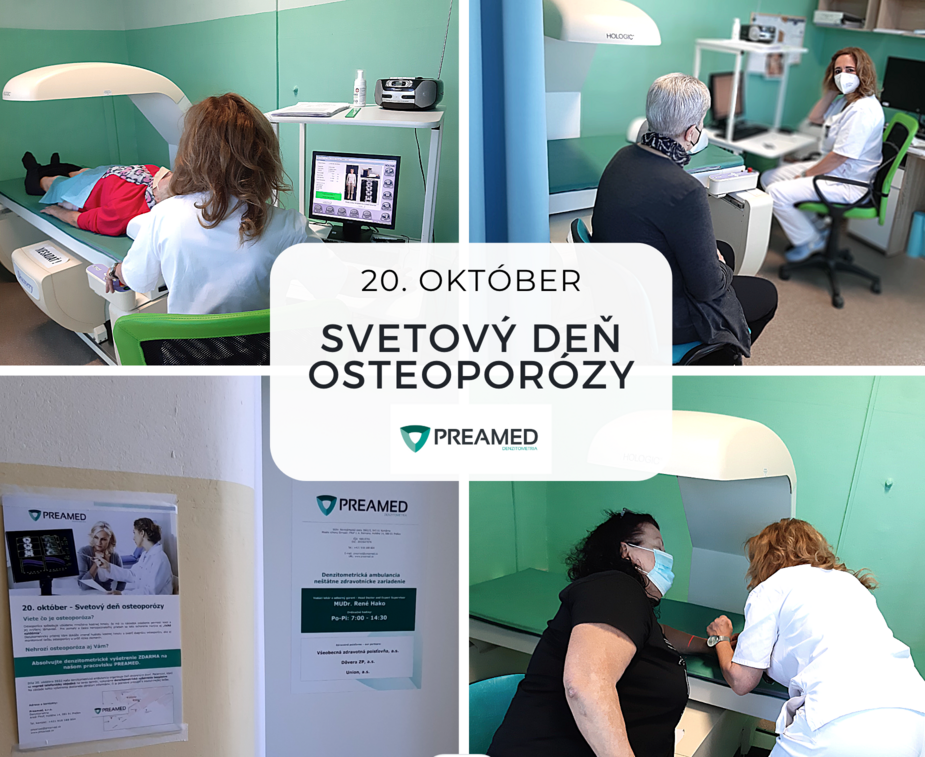 Dnes, počas Svetového dňa osteoporózy, prebiehajú na našom pracovisku Preamed v Prešove denzitometrické vyšetrenia pacientov zdarma.